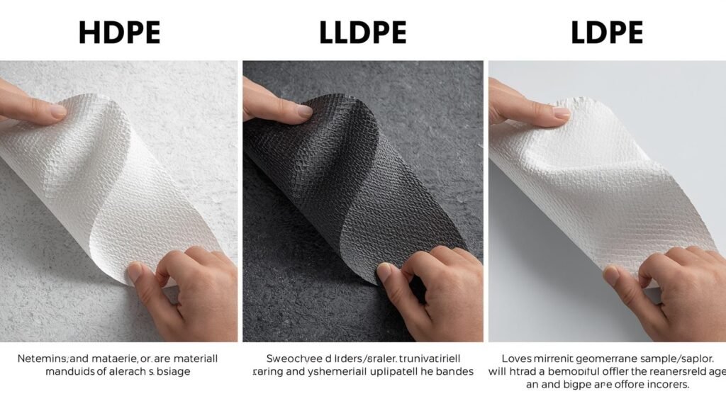 Muchos compradores se confunden al ver geomembranas de HDPE, LLDPE y LDPE en sus cotizaciones. Todas parecen rollos de plástico negro, pero su rendimiento varía mucho.